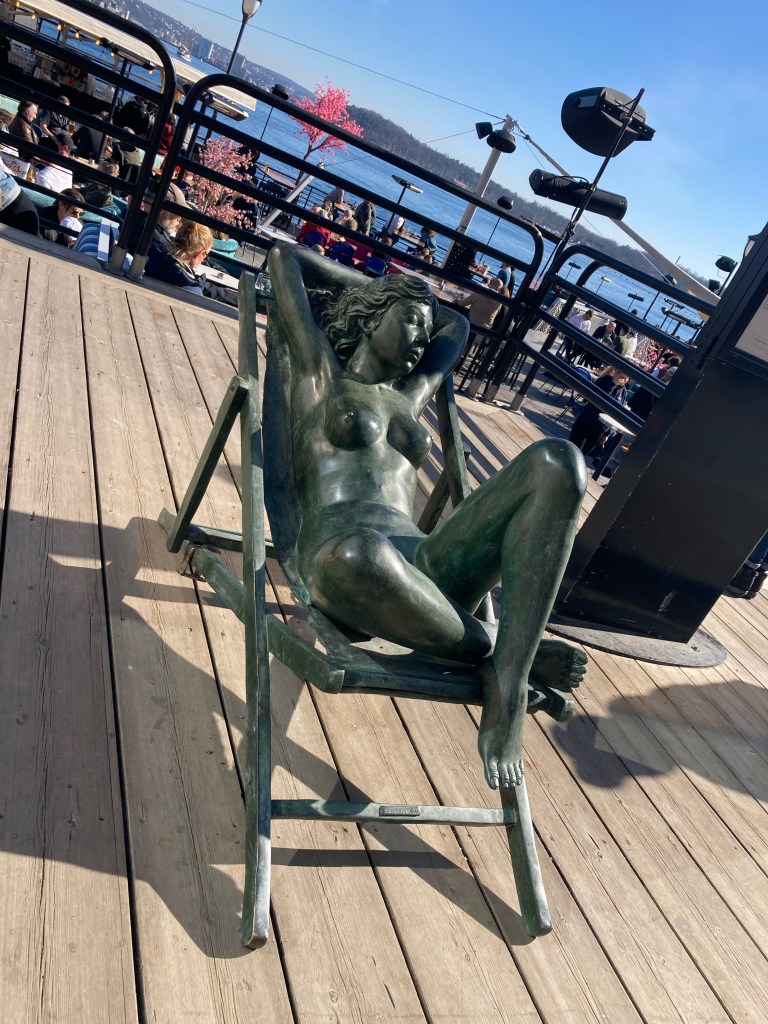 Comme nous, cette norvégienne de bronze profite du soleil, le nombre de statues que l’on croise en ville est impressionnant !