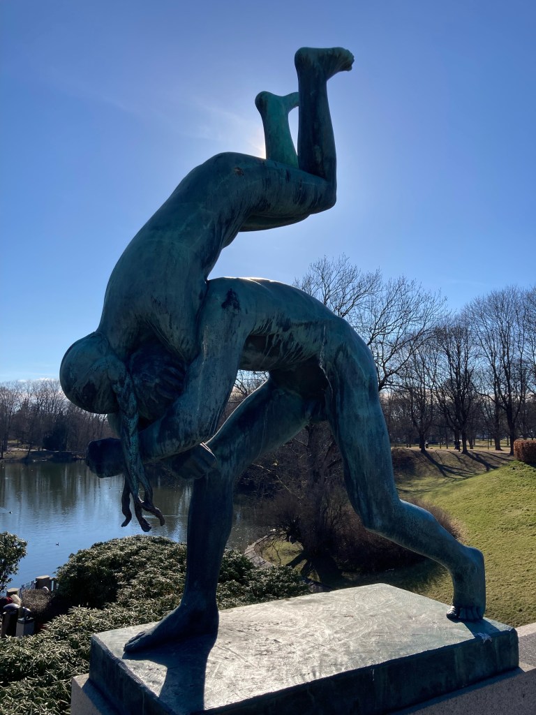 L’après midi fut l’occasion d’une grande balade jusqu’au Parc Vigeland, du nom de l’artiste scuplteur Gustav Vigeland (1869-1943), le parc est agrémenté de plus de 200 sculptures en bronze, granit et fer forgé.