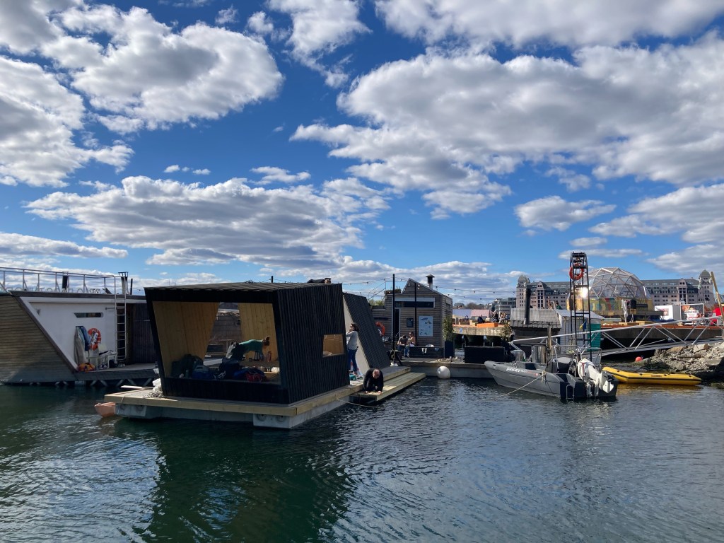 Retour en ville, ou malgré une eau à 5°, les norvégiens n’hésitent pas à plonger (après être passés se réchauffer dans les saunas arrimés aux quais).